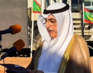 De son côté, le PDG du Fonds saoudien pour le développement, président de la coalition des bailleurs de fonds, M. Sultan ben Abderrahmane Al-Marshad, a exprimé sa joie d’être aujourd’hui en Mauritanie pour participer à la cérémonie de pose de la première pierre du projet d’approvisionnement en eau potable de la ville de Kiffa, un projet au financement duquel le Fonds contribue par un prêt de développement concessionnel d’une valeur de (100 millions de dollars), ce qui représente plus de 30% du montant total du financement du projet, qui s’élève à 317 millions de dollars, soulignant que ce projet incarne le partenariat de développement étroit qui dure depuis plus de 45 ans entre le Fonds et la Mauritanie.Il a déclaré que ce projet vise à combler le déficit constaté dans la satisfaction de la demande croissante en eau potable, à relever les défis auxquels sont confrontés les besoins des habitants de diverses régions, et à réduire la consommation d’eau non potable et la propagation des maladies causées par l’eau contaminée.