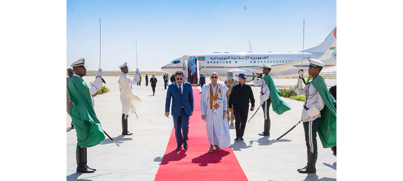 Son Excellence le Président de la République a été accueilli à l’atterrissage de l’avion à l’aéroport international de Nouakchott – Oumtounsi par le Premier ministre, M. Mokhtar Ould Djay, le ministre de la Justice, M. Mohamed Ould Soueidatt, le ministre de la Défense, des Retraités et des Enfants des Martyrs, M. Hanena Ould Sidi, le ministre de l’Intérieur, de la Promotion de la Décentralisation et du développement Local, M. Mohamed Ahmed Ould Mohamed Lemine, le chef de l’état-major particulier du Président de la République, le général de division Mohamed Mokhtar Cheikh Menni, et la directrice adjointe de cabinet du Président de la République, Mme Gandega Fatimata, le wali adjoint de Nouakchott Ouest, M. Khyarhoum Ould El-Moustapha, et la vice-présidente de la région de Nouakchott, Mme Hawa Sidibé.