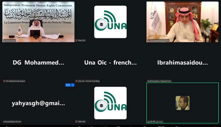 L’Union des Agences de Presse des États Membres de l’Organisation de la Coopération Islamique “UNA” a organisé, mardi à Djeddah, une réunion virtuelle de présentation de la Commission Indépendante Permanente des Droits de l’Homme de l’Organisation de la Coopération Islamique, avec la participation de plusieurs directeurs d’Agences de Presse des États membres de l’OCI, dont le directeur général de l’Agence Mauritanienne d’Information, M. Mohamed Taghiyoullah El Adham, au côté de plusieurs consuls, délégués généraux et personnalités intéressées par les droits de l’homme de diverses organisations et entités.