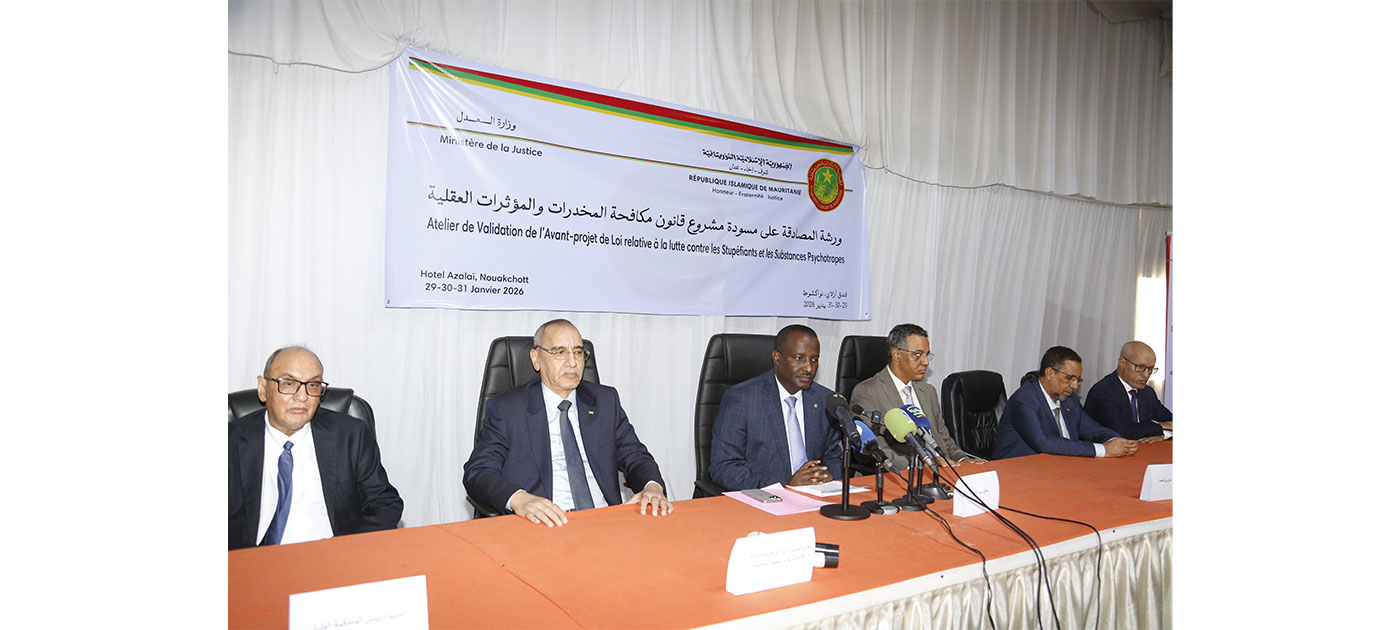 Le ministre de la Justice, M. Mohamed Ould Soueidatt, a supervisé jeudi à Nouakchott, le lancement d’un atelier sur la validation du projet de loi de lutte contre les stupéfiants et les substances psychotropes.