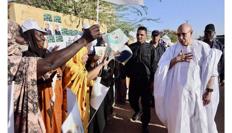 Son Excellence le Président de la République, Monsieur Mohamed Ould Cheikh El Ghazouani, s’est arrêté, lundi après-midi, en route vers l’aéroport de la ville de Kaédi, pour saluer un groupe de citoyens bénéficiaires des programmes sociaux mis en œuvre par la Délégation Générale à la Solidarité Nationale et à la Lutte contre l’Exclusion “Taazour”.