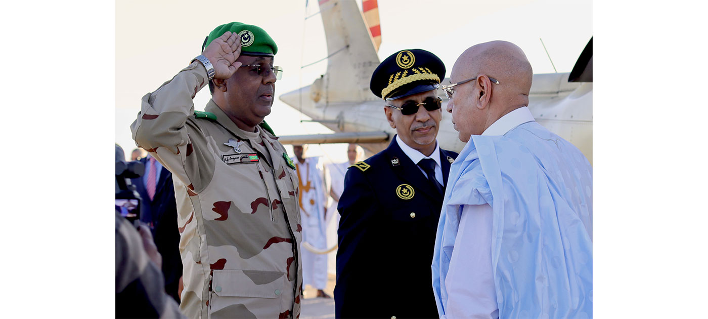Son Excellence le Président de la République a été reçu à la piste d’atterrissage par le wali du Gorgol, M. Mohamed Mokhtar Ould Abdi, le Commandant de la 7e Région Militaire, le Colonel Ammar Ahmed Hanenna, le hakem de la moughataa de M’bout, M. Mohamed Mokhtar Mohamed Mahmoud Etfagha -Nour, le Maire de la Commune de M’bout, M. Sidi Bouya Ould Mohamed Mahmoud Ould Tar, et les députés de la moughataa, MM. Hassen Baha, Yarba Sidi Braika et Jaafar Melainine Haschem.