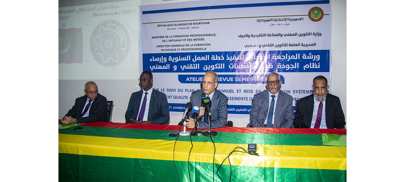 Le ministère de la Formation professionnelle, de l’Artisanat et des Métiers a organisé ce samedi, au Centre supérieur d’enseignement technique de Nouakchott, un atelier consacré à la revue trimestrielle de la mise en œuvre du plan d’action annuel et à la mise en place d’un système qualité dans les établissements de formation technique et professionnelle. Cette revue s’inscrit dans le cadre de la réforme globale en cours dans le secteur, visant à passer d’une approche axée sur la mise en œuvre des activités à une approche axée sur la mesure des résultats et de l’impact, à l’aide d’indicateurs clairs et de mécanismes de suivi précis.
