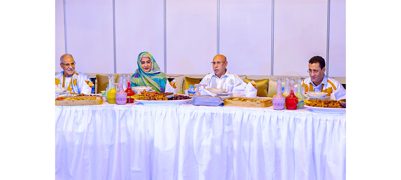 Madame la Première Dame, Dr. Mariem Mohamed Fadel Dah, a assisté à la cérémonie de l’iftar, ainsi que Son Excellence le Premier Ministre, Monsieur El Moctar Ould Djay, le Président de l’Assemblée Nationale, le Président du Conseil Constitutionnel, le Président de l’Institution de l’Opposition Démocratique, le Ministre chargé du Cabinet du Président de la République, les deux Ministres Conseillers à la Présidence de la République, et les membres du Gouvernement.