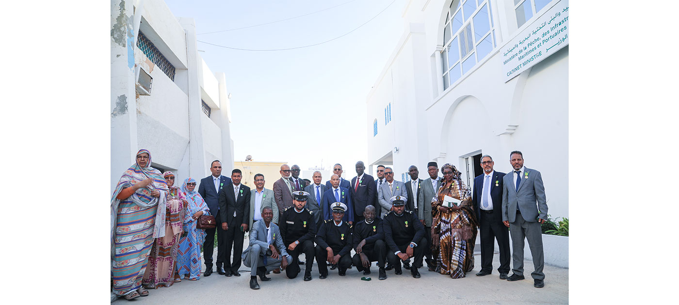 La cérémonie de décoration s’est déroulée en présence du secrétaire général du Ministère de la Pêche, des Infrastructures Maritimes et Portuaires, Monsieur Sidi Ali Ould Sidi Boubacar, du Commandant des garde-côtes mauritaniennes et de nombreux responsables centraux du secteur.
