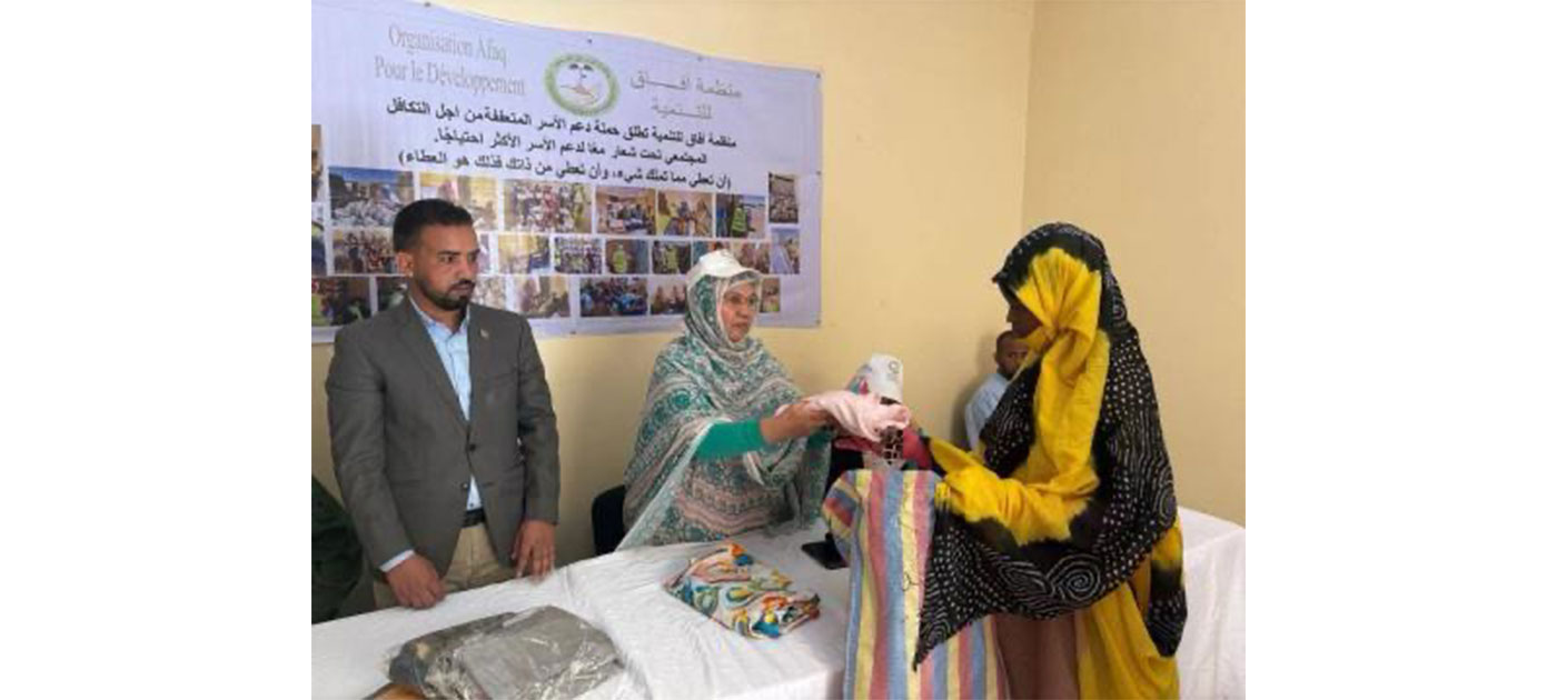 L’organisation Afaq pour le développement a lancé aujourd’hui dimanche, dans la moughataa de Bir Oumgrein, une campagne de distribution de vêtements de l’Aïd au profit de 106 orphelins, veuves et personnes démunies de la moughataa.
