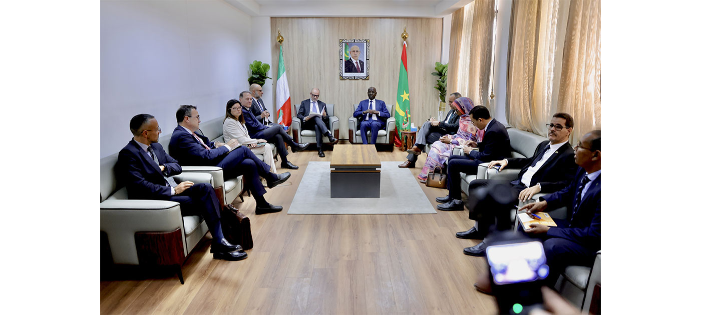 Son Excellence ministre des Affaires Étrangères et des mauritaniens de l’Extérieur, M. Mohamed Salem Merzoug, a présidé une session avec une délégation italienne de haut niveau, conduite par Son Excellence le ministre de la santé, M. Orazio Schillaci accompagné du vice-ministre des Affaires Étrangères et de la Coopération Internationale, M. Edmondo Cirielli.