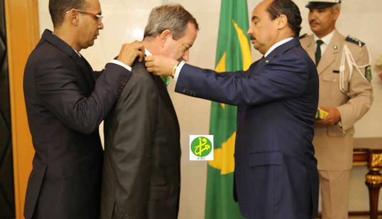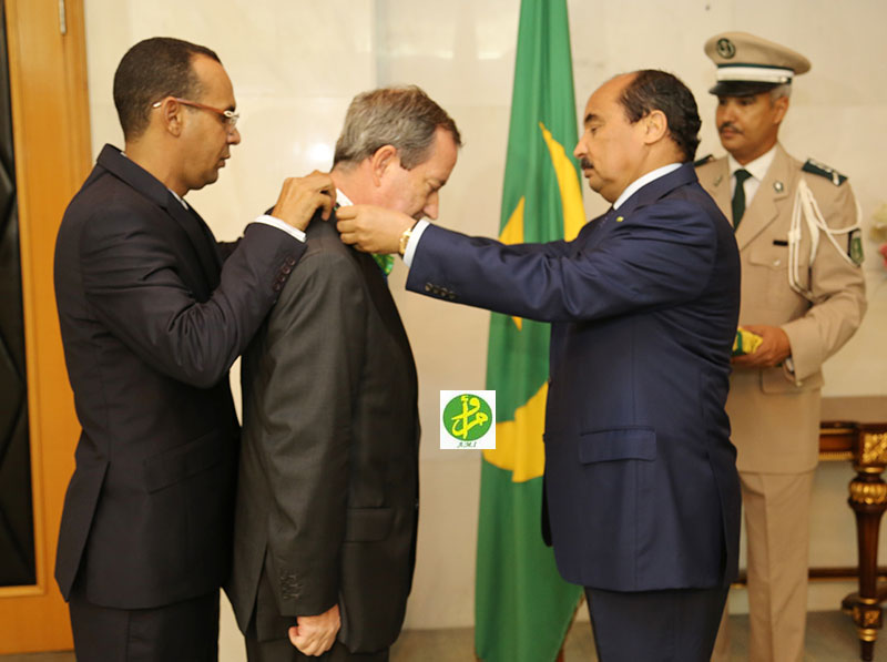 Le Président de la République, Monsieur Mohamed Ould Abdel Aziz a décoré, mardi, au palais présidentiel à Nouakchott, du grade de commandeur de l’Ordre du Mérite National, SEM. Alonso Dezcallar Mazarredo, ambassadeur du Royaume d’Espagne en Mauritanie, et ce à l’occasion de la fin de sa mission en Mauritanie.