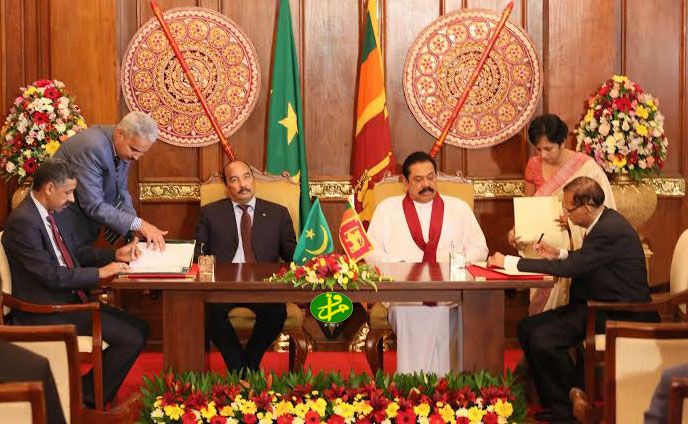 Le Président de la République Monsieur Mohamed Ould Abdel Aziz et son homologue Sri Lankais Monsieur Mahinda RAJAPAKSA ont assisté, jeudi matin à Colombo, à la signature de deux conventions de coopération dont la prémière porte sur la mise en place d’un haut comité économique mixte, la seconde est relative à l’ouverture des concertations politiques entre les ministères des affaires étrangères des deux pays.