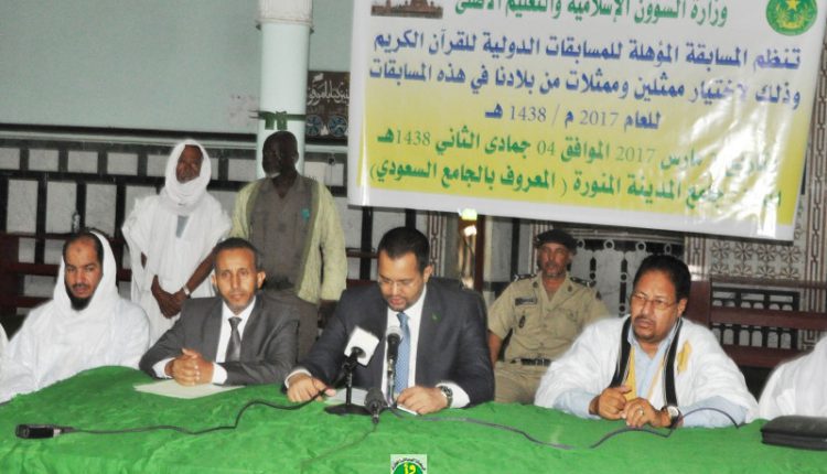 La mosquée dite saoudienne de Nouakchott a abrité vendredi les manifestations marquant le concours préparatoire du concours international de récitation et de “Tajouid” du Saint Coran organisé par le ministère des affaires islamiques et de l’enseignement originel à travers la direction de l’orientation islamique.