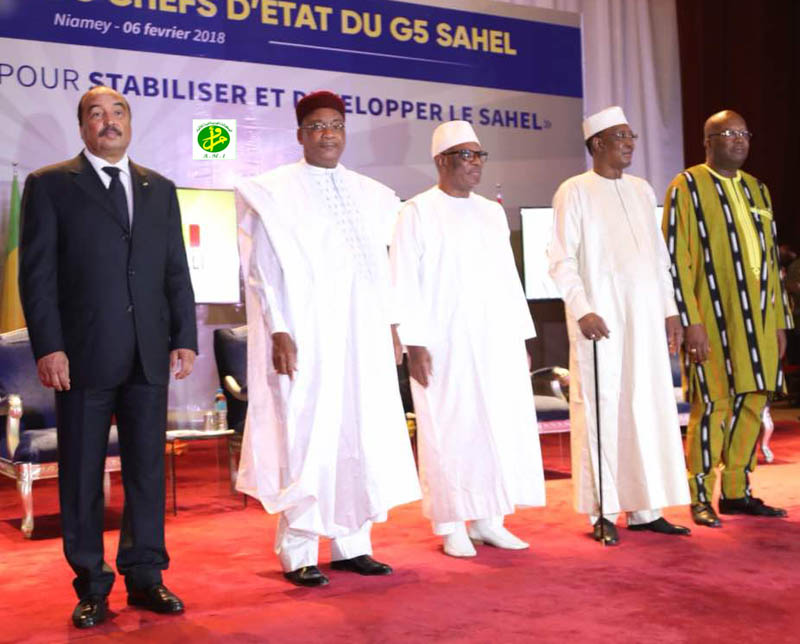 Les travaux du 4ème Sommet du G5-SAHEL ont démarré, mardi à Niamey (Niger), avec la participation du Président de la République Monsieur Mohamed Ould Abdel Aziz aux côtés de ses homologues du Niger, Monsieur Issoufou Mahamadou, du Tchad Monsieur Idriss Deby Etno, du Mali Monsieur Ibrahima Boubakar Keita et du Burkina Faso, Monsieur Roch Marc Christian Kaboré.