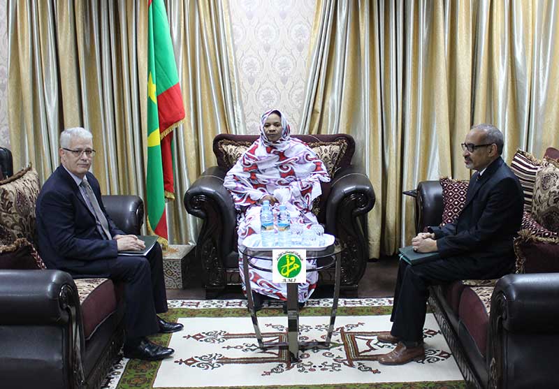 La ministre déléguée auprès du ministre des Affaires étrangères et de la Coopération, chargée des Affaires africaines, Maghrébines et des Mauritaniens de l’Etranger, Mme Khadijetou Mint MBareck Fall, a reçu en audience, jeudi dans son bureau, le chargé d’affaires de l’ambassade marocaine à Nouakchott, SEM Hassane Ben Moussani.
