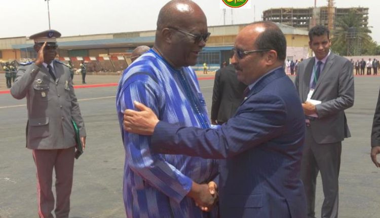 Le Président de la République, Son Excellence Monsieur Mohamed Ould Abdel Aziz, est arrivé mercredi à Ouagadougou pour prendre part aux travaux du sommet extraordinaire des chefs d’Etat du G5 Sahel qui s’ouvrira aujourd’hui dans la capitale burkinabèe.