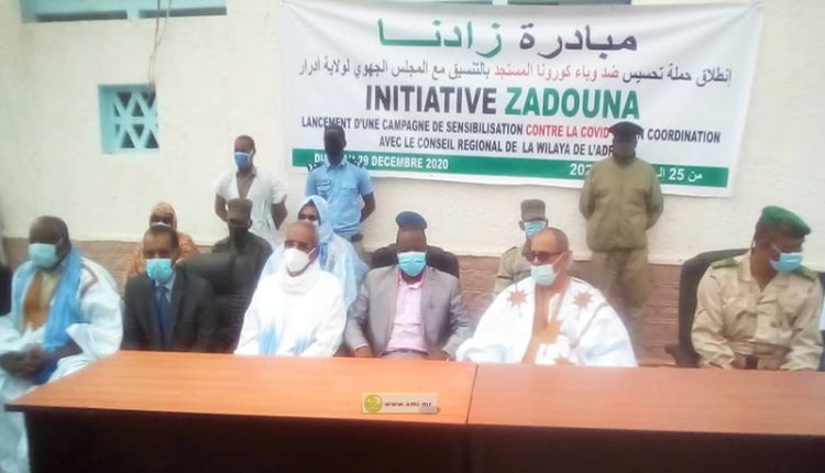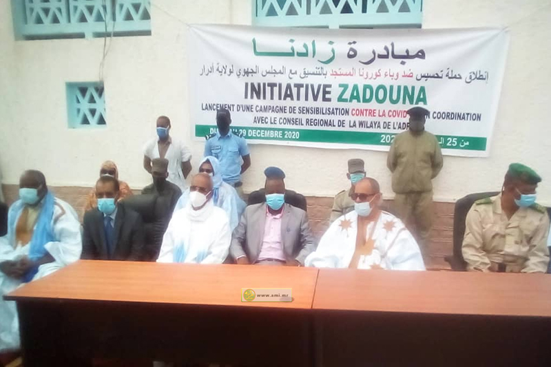 L’initiative « Zadana » a effectué, lundi, un don de masques à Atar. Le lot de vingt mille masques a été réceptionné par le wali d’Adrar, M. Hadadi M’Paly Yatéra. Il est destiné prioritairement à l’administration régionale, aux forces de défense et de sécurité.