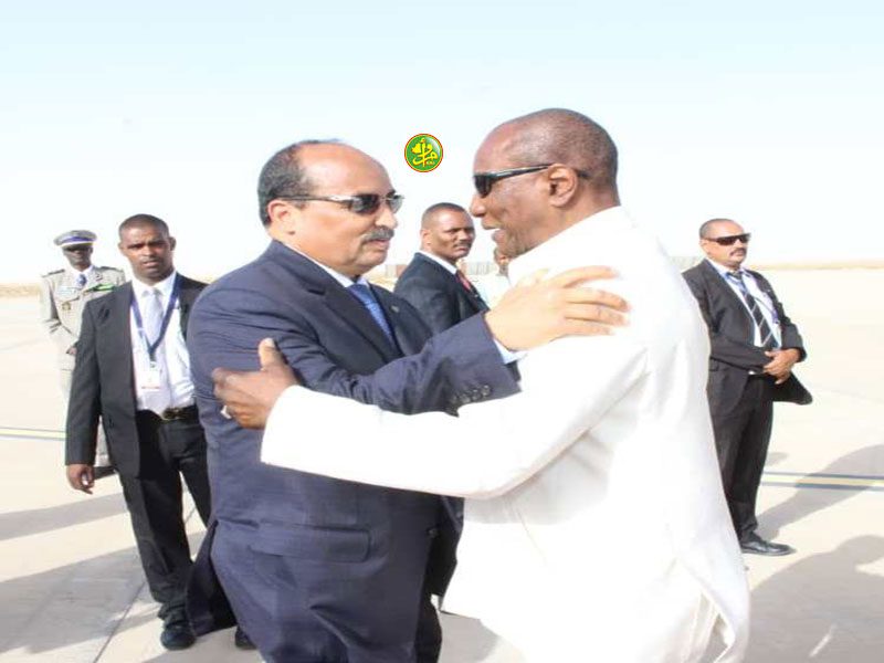 واستقبل الرئيس الغيني لدى وصوله مطار نواكشوط الدولي أم التونسي من طرف فخامة رئيس الجمهورية السيد محمد ولد عبد العزيز محاطا بالوزير الأول السيد محمد سالم ولد البشير والوزير الأمين العام لرئاسة الجمهورية ومدير ديوان رئيس الجمهورية وقادة أركان القوات المسلحة وقوات الأمن ووالي نواكشوط الغربية.