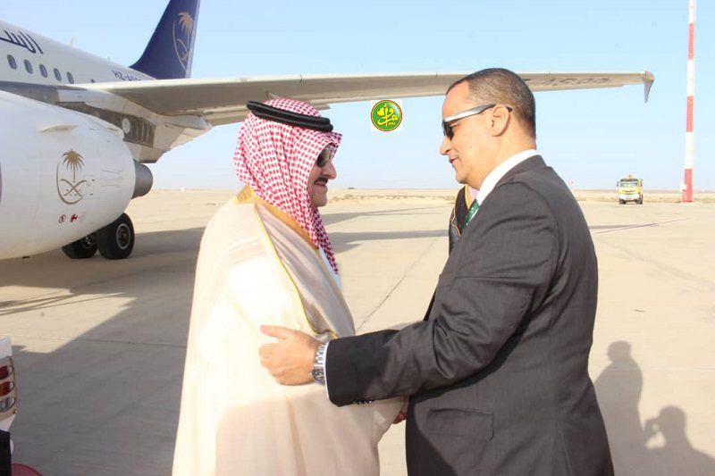 واستقبل صاحبا السمو الملكي لدى وصولهما مطار نواكشوط الدولي “أم التونسي” من طرف وزير الشؤون الخارجية والتعاون السيد إسماعيل ولد الشيخ أحمد، والسفير السعودي المعتمد لدى بلادنا، سعادة السيد هزاع بن زبن بن ضاوي لمطيري.