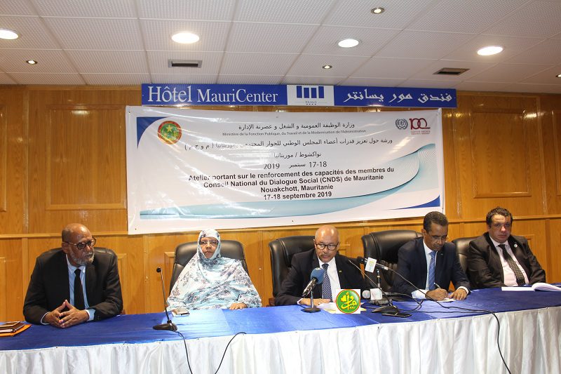 انطلقت اليوم الثلاثاء في نواكشوط أعمال ورشة حول تعزيز قدرات أعضاء المجلس الوطني للحوار الاجتماعي، منظمة من طرف وزارة الوظيفة العمومية والعمل وعصرنة الإدارة بالتعاون مع المكتب الدولي للشغل.