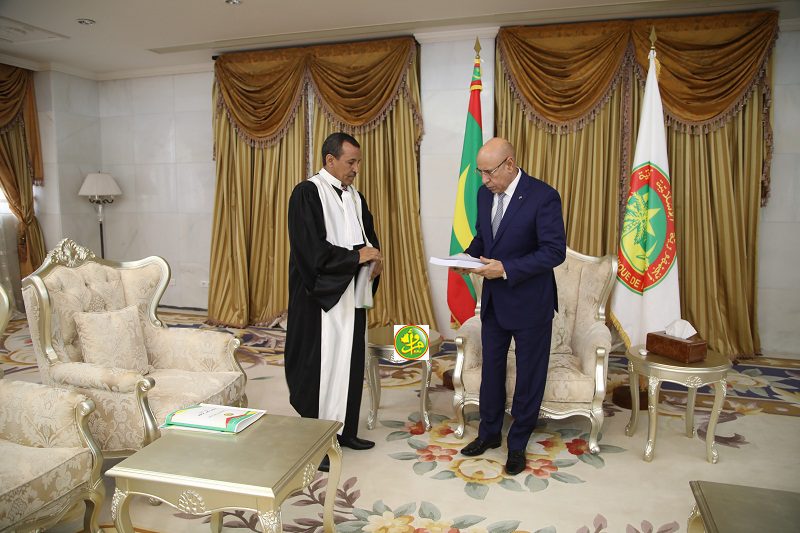وقام بتسليم التقرير رئيس المحكمةالسيد سيدنا عالي ولد سيدي ولد الجيلاني خلال استقبال خصه به رئيس الجمهورية.