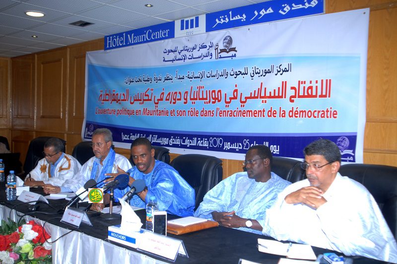 نظم المركز الموريتاني للدراسات والبحوث الإنسانية “مبدأ” مساء أمس الأربعاء في نواكشوط ندوة تحت عنوان:”الانفتاح السياسي في موريتانيا ودوره في تكريس الديمقراطية”.