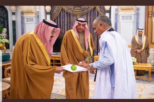 من جانبه طلب خادم الحرمين الشريفين من سعادة السفير نقل تحياته لفخامة رئيس الجمهورية وتمنياته للحكومة والشعب الموريتاني الشقيق المزيد من التقدم والازدهار .