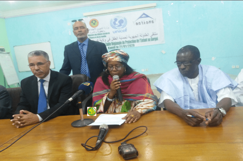 أشرفت وزيرة الشؤون الاجتماعية و الطفولة و الأسرة الدكتورة ننه أمو دافا كان، رفقة والي غورغول السيد يحي ولد الشيخ محمد فال، صباح اليوم الثلاثاء بمدينة كيهيدي على انطلاق الطاولة الجهوية لحماية الطفولة، المنظمة من طرف وزارة الشؤون الاجتماعية والطفولة والاسرة بالتعاون مع صندوق الأمم المتحدة للطفولة(اليونسيف).