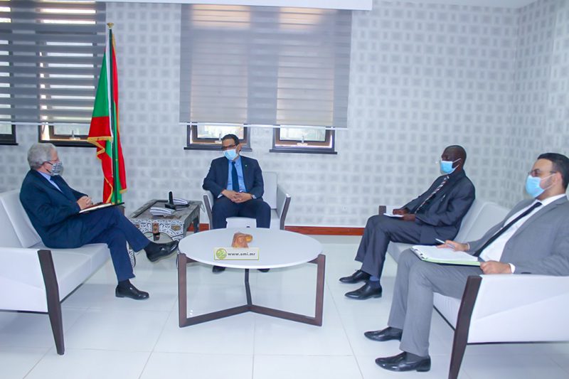 وجرى اللقاء بحضور الأمين العام للوزارة، السيد عالي سومارى والمدير العام للاستثمارات العمومية والتعاون الاقتصادي، السيد أحمد سالم ولد الناني.
