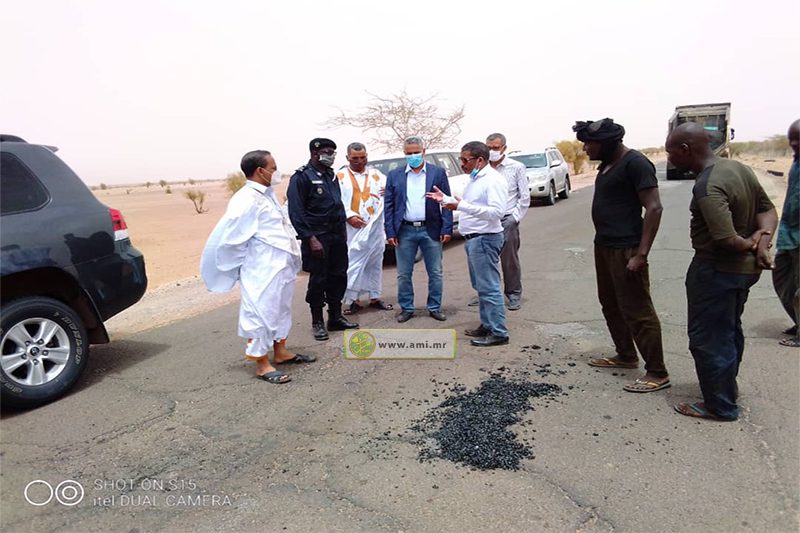 ورافق الوزير في مختلف محطات هذه الزيارة السلطات الإدارية والامنية والمستشار المكلف بالبنى التحتية المهندس حمودي ولد محمد سيدي والمدير العام للبنى التحتية للنقل المهندس أباي ولد أمعييف والمديرة العامة للمختبر الوطني للأشغال العامة اربيها بنت عبد الودود والمدير العام لشركة الأشغال والنظافة والصيانة المهندس علي ولد الفيرك وعدد من أطر القطاع .