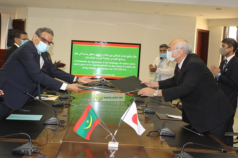 ووقع الاتفاقية وزير الاقتصاد والصناعة السيد عبد العزيز ولد الداهي و السفير الياباني المعتمد لدى موريتانيا، سعادة السيد أهارا نوريو.