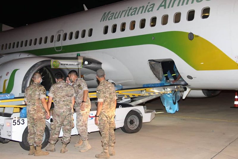 تسلمت السلطات اللبنانية مساء اليوم الإثنين بمطار بيروت كمية السمك المقدمة من الجمهورية الإسلامية الموريتانية لمؤازرة الشعب اللبناني في مواجهة مخلفات الإنفجار الضخم الذي هز مرفأ بيروت.