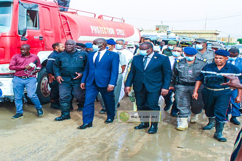 وقد مكنت هذه الزيارة الوفد الحكومي الذي ضم كل من وزير الداخلية واللامركزية الدكتور محمد سالم ولد مرزوك وزيرة الإسكان والعمران والاستصلاح الترابي السيدة خديجة الشيخ بوكه ووزير المياه والصرف الصحي السيد سيد أحمد ولد محمد من الوقوف ميدانيا على حجم الأضرار الناجمة عن تلك التساقطات المطرية وعمليات شفط المياه التي باشرت تنفيذها المندوبية العامة للأمن المدني وتسيير الأزمات والمكتب الوطني للصرف الصحي منذ الساعات الأولى من هذا الصباح.