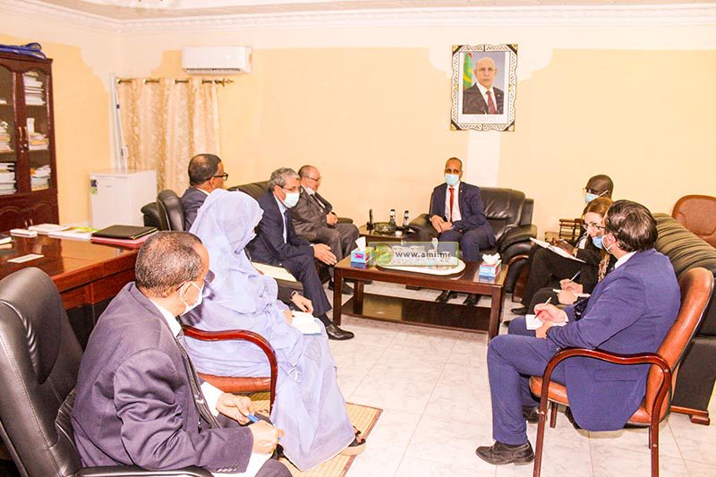 استقبل معالي وزير التهذيب الوطني والتكوين التقني والإصلاح السيد محمد ماءالعينين ولد أييه اليوم الخميس في مكتبه المدير العام للوكالة الجزائرية للتعاون الدولي من أجل التضامن والتنمية السيد محمد شفيق مصباح رفقة سعادة السفير الجزائري المعتمد ببلادنا السيد نور الدين خندودي .