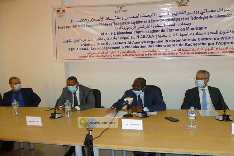 أشرف معالي وزير التعليم العالي والبحث العلمي وتقنيات الإعلام والاتصال، الناطق الرسمي باسم الحكومة، سيدي ولد سالم اليوم الجمعة بمقر جامعة نواكشوط العصرية على اختتام مشروع مواكبة واحتضان مخابر البحث عن طريق التكوين.