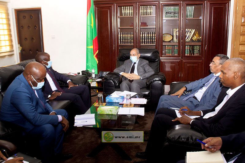 وجرى اللقاء بحضور الأمين العام للوزارة، السيد محمد أحمد عيده، والمستشارين الفنيين أعمر ولد القاسم وأبو مودى جالو.