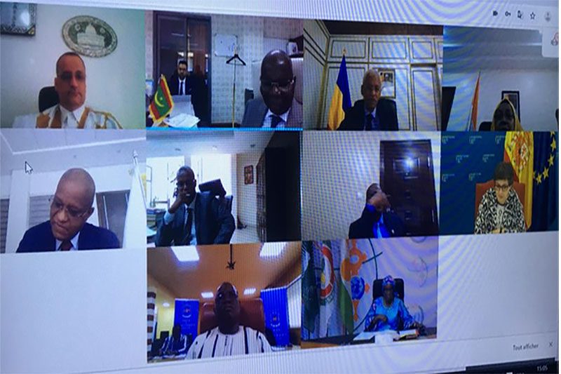 شارك معالي وزير الشؤون الخارجية والتعاون والموريتانيين في الخارج السيد إسماعيل ولد الشيخ أحمد اليوم الخميس، عبر الفيديو كونفرنس، رفقة معالي وزير الشؤون الاقتصادية وترقية القطاعات الانتاجية السيد عثمان مامودو كان، في الاجتماع الوزاري للائتلاف من أجل الساحل ومجموعة دول الساحل الخمس المنعقد تحت رئاسة معالي وزيرة الشؤون الخارجية الإسبانية السيدة آرانشا غونزاليس لايا، وبحضور أصحاب المعالي وزراء الخارجية ووزاراء الاقتصاد لمجموعة دول الساحل الخمس والأمين التنفيذي للمجموعة مامان سيديكو.