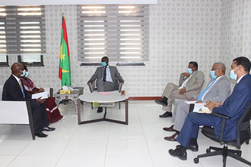 وجرى اللقاء بحضورالسيد/ محمد المصطفى الملقب إدومو عبدي أجيد ، الأمين العام للوزارة ، و السيد/ عباس سلا ، المدير العام للسياسات واستراتجيات التنمية بالوزارة والسيد/محمد المختار/ أحمد سيدي، مدير المكتب الوطني للإحصاء .