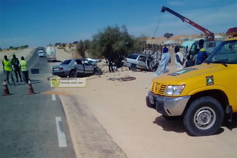 وقع اليوم الأحد حادث مروع إثر تصادم سيارة مرسدس قادمة من نواكشوط وسيارة رينو قادمة من المناطق الشرقية للبلاد عند الكيلومتر 44 من مدينة بوتلميت باتجاه انواكشوط.