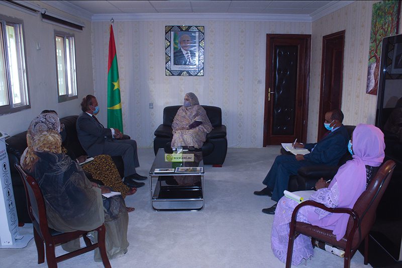 وجرى الاجتماع بحضورالأمين العام للوزارة السيد محمد محمود سيدي يحيى، والمكلفة بمهمة بالوزارة السيدةأومو دينق بوبو فاربا، والمستشارة الفنية المكلفة بالاتصال، ومدير مركز الحماية و الدمجالاجتماعي للأطفال المعاقين