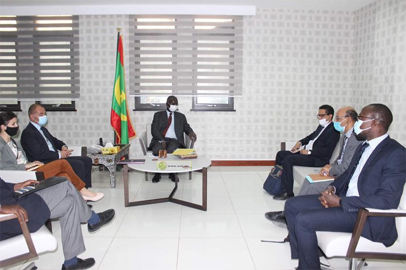 استقبل معالي وزير الشؤون الاقتصادية وترقية القطاعات الإنتاجية السيد عثمان مامودو كان، صباح اليوم الخميس بمكتبه في انواكشوط، بعثة من الصندوق العالمي لدعم ومشاركة وصمود المجتمعات، برئاسة السيد خالد كوسير المدير التنفيذي للصندوق، رفقة وفد من مجموعة الدول الخمس بالساحل.