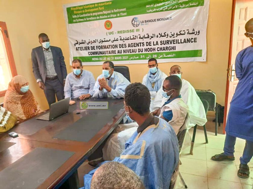 وأوضح الدكتور بزيد ولد المامي ،خبير في مجال الصحة الحيوانية لدى المشروع الجهوي لدعم أنظمة الرقابة في غرب افريقيا REDISSE3 أن عدد المشاركين في هذه الورشة وصل الى ٨٤ وكيلا تم انتقاؤهم من العاملين في الصحة العمومية والبيئية ويمثلون ٤٠ قرية في الحوض الشرقي، مشيرا الى أن هذه القرى تتوزع على النحو التالي: ١٠ قرى في مقاطعة النعمة و١٠ في أمورج و٥ في باسكنو و٥ في جيكني و٣ في ولاتة وقريتان في انبيكت لحواش.
