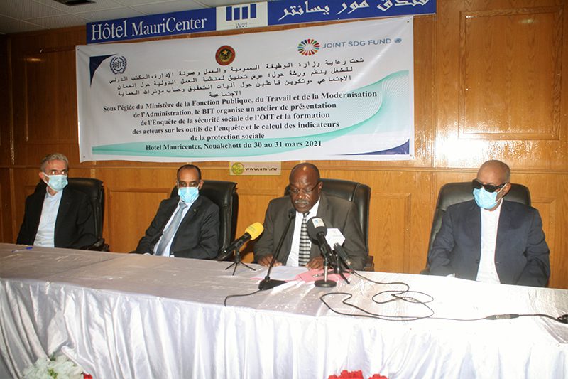 وأوضح المكلف بمهمة بوزارة الوظيفة العمومية والعمل وعصرنة الإدارة، السيد إبراهيم ولد مسعود، الأمين العام للوزارة وكالة، أن الهدف من هذه الورشة هو المساهمة في ضمان الحماية الاجتماعية لجميع الموريتانيين والحد من التفاوت بغية القضاء على الفقر، تمشيا مع مضامين برنامج رئيس الجمهورية، السيد محمد ولد الشيخ الغزواني، “تعهداتي”.