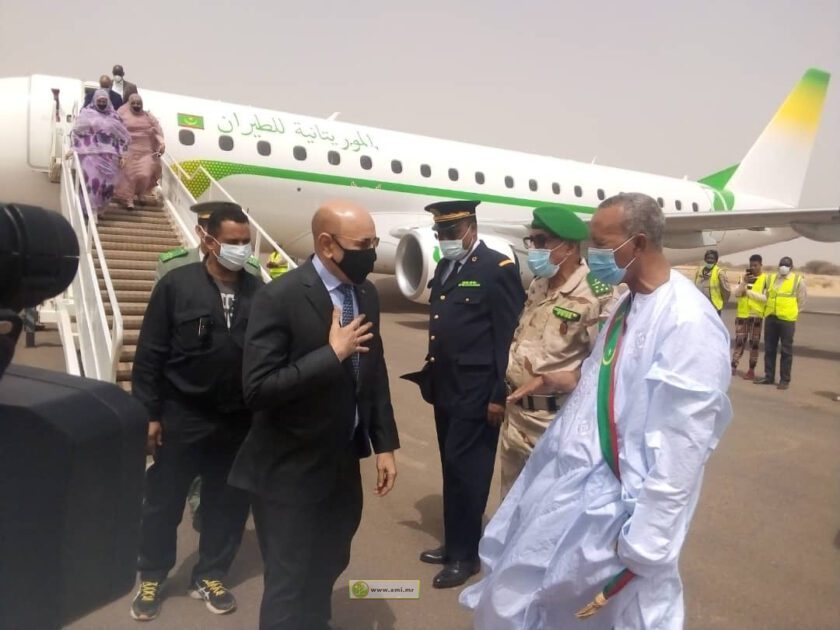 واستقبل رئيس الجمهورية لدى وصوله من طرف والي الولاية السيد الشيخ ولد عبد الله ولد أواه، والسلطات الإدارية والمنتخبين وقادة التشكيلات العسكرية والأمنية بالولاية.