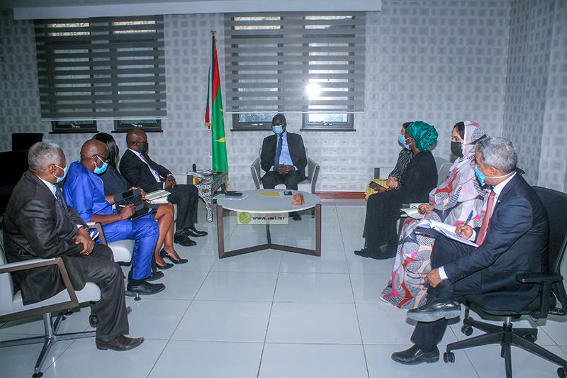 وحضر اللقاء المستشار القانوني للوزير، الأمين العام للوزارة وكالة، والمستشارة المكلفة بالقطاع الخاص والمديرة العامة لوكالة ترقية الاستثمار في موريتانيا والمدير العام للشراكة بين القطاع العام والخاص، وممثلة البنك الدولي في موريتانيا.