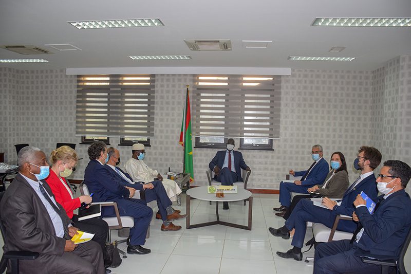 جرى اللقاء بحضور المستشار القانوني بالوزارة الأمين العام وكالة السيد محمد سالم ولد اسويلم ، والمدير العام المساعد لإدارة التمويلات والتعاون الاقتصادي السيد محفوظ ولد أحمدو.