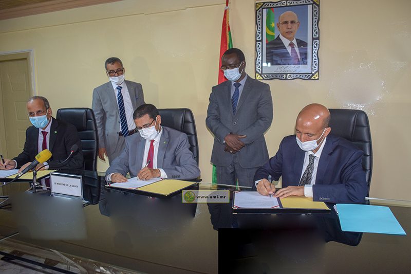 وقع وزيرا التهذيب الوطني والتكوين والإصلاح والصحة السيدان محمد ماء العينين ولد أييه ومحمد نذير ولد حامد اتفاقية مع رئيس البنك الوطني لموريتاني السيد محمد ولد عبد الله ولد انويكظ، اليوم الخميس بمبنى وزارة الصحة، بموجبها يتولى البنك بناء مدارس ونقاطا صحية في مناطق بالداخل.