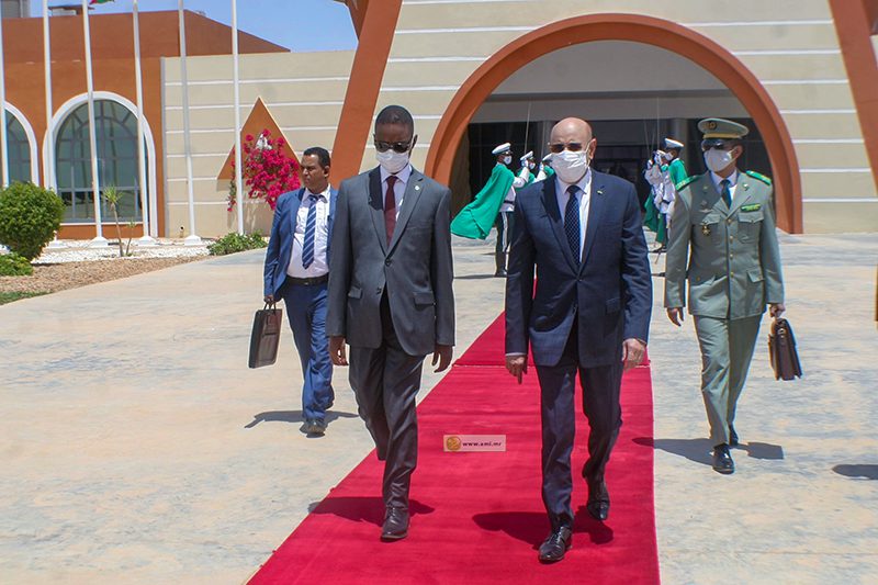 وودع رئيس الجمهورية بمطار انواكشوط الدولي أم التونسي من طرف معالي الوزير الأول السيد محمد ولد بلال ومعالي الوزير الأمين العام لرئاسة الجمهورية وعدد من أعضاء الحكومة وقائد الأركان الخاصة لرئيس الجمهورية والمديرة المساعدة لديوان رئيس الجمهورية ووالي انواكشوط الغربية ورئيسة جهة انواكشوط.