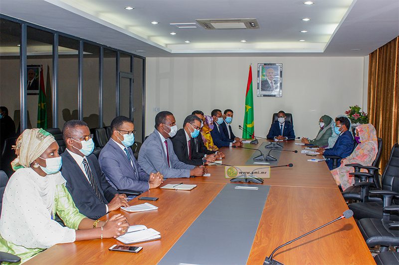 وجرى الاجتماع بحضور السيدة عيشة فال بنت فرجس، مديرة ديوان الوزير الأول ومكلفين بمهام ومستشارين بالوزارة الأولى.