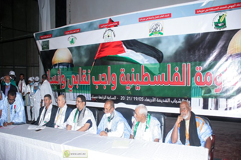 احتضنت دار الشباب القديمة مساء اليوم الأربعاء في نواكشوط تظاهرة لدعم وتأييد القضية الفلسطينية منظمة من طرف المركزيات النقابية مؤازرة ودعما للشعب والمقاومة الفلسطينيين ونصرة للأقصى وإيمانا بالقضية الفلسطينية العادلة .
