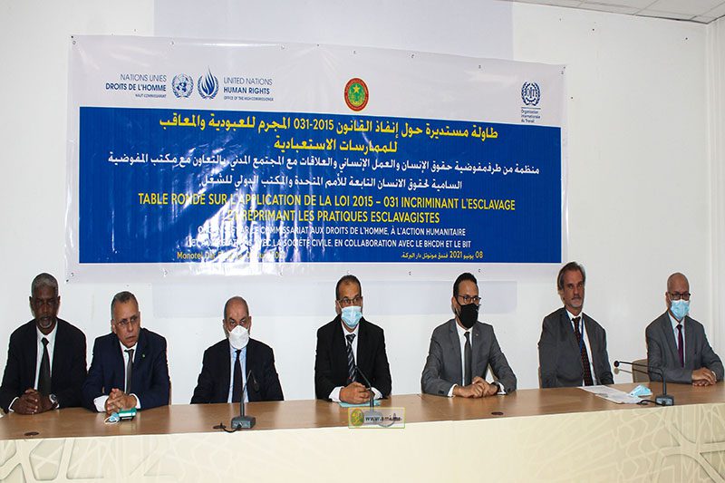 أشرف معالي مفوض حقوق الإنسان والعمل الإنساني والعلاقات مع المجتمع المدني، السيد الشيخ أحمدو ولد أحمد سالم ولد سيدي، صباح اليوم الثلاثاء بنواكشوط على افتتاح أعمال طاولة مستديرة لمناقشة مختلف القضايا المتعلقة بتنفيذ القانون المجرم للعبودية والمعاقب للممارسات الاسترقاقية.