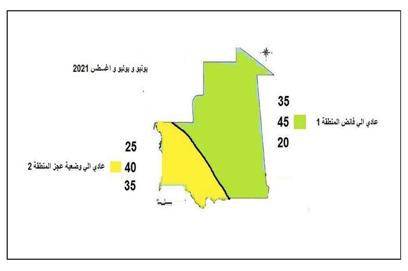 * بالنسبة للمنطقة (2) والتي تغطي جنوب شرق الحوض الشرقي والحوض الغربي وجنوب غرب تكانت ولعصابه وكيدي ماغه وكوركول ولبراكنة واترارزه وولايات نواكشوط مع مجاميع مطرية اعتيادية تميل إلى العجز يجب على المزارعين ما يلي: