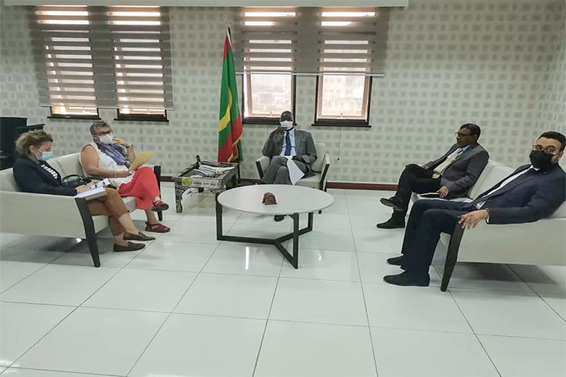 وجرى اللقاء بحضور الأمين العام للوزارة السيد محمد المصطفى الملقب إدوم ولد عبدي ولد أجيد، والمدير العام للتمويلات العمومية والتعاون الاقتصادي بنفس القطاع السيد محمد سالم ولد الناني.